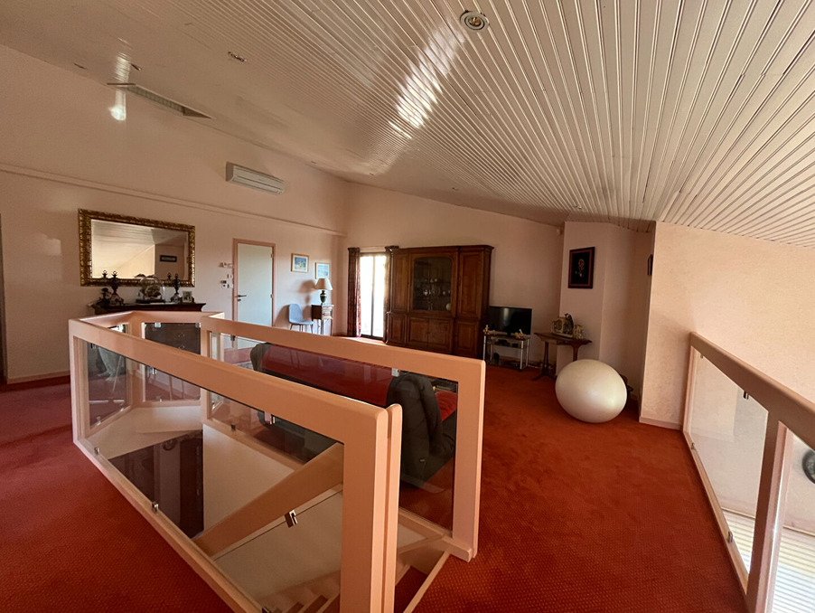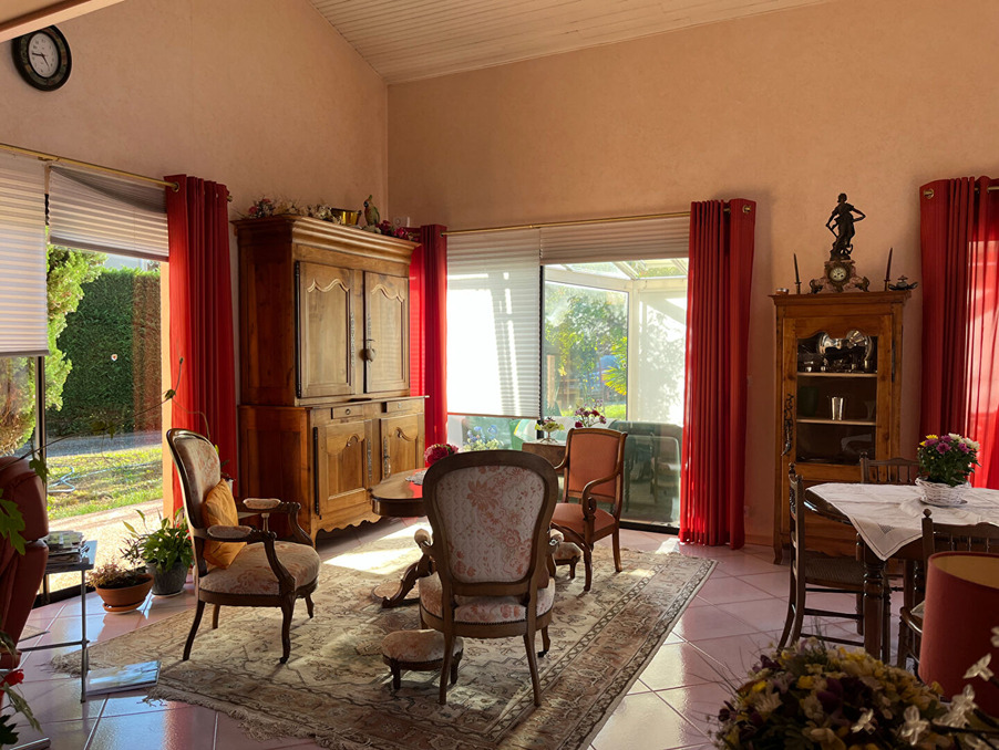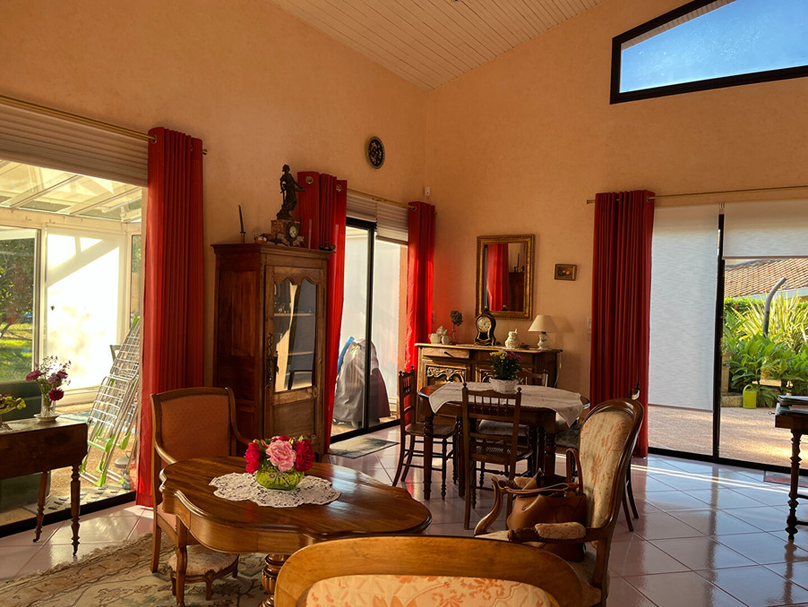 À seulement cinq minutes de l'accès rocade et des commerces, dans un quartier résidentiel paisible, cette maison d'architecte offre un cadre de vie idéal, alliant confort, fonctionnalité et élégance. Dès l'entrée, on est séduit par la luminosité omniprésente et les beaux volumes qui structurent les pièces de vie. Le séjour et la salle à manger s'ouvrent harmonieusement sur une grande véranda, véritable extension de la maison, baignée de lumière et tournée vers le jardin.